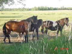 FIELD TRIPS - LESSONS - BOY/GIRL SCOUTS - GROUPS Our Training Motto is: "What it takes to own your own horse!" We feel some purchase a horse because they are "pretty"-"exciting to own"-"it's a phase they are going through"-"their best friend owns one" and "you can ride them". Too often "some" horse owners will purchase horses without a clue of how to take care of them properly. Some have no clue the yearly cost of owning a horse or 2 or 3, or the past history of the horse they are purchasing, or even what to look for. Some have no idea how they were trained, what to if a horse colic's or founders, or even the meaning of these words. In our three (3) generation horse experience, we have seen this in the past and continue to see it over and over with several we have come to know. (This doesn't mean we know all the answers, we are amazed how much we learn daily) Some have no idea when to call a Farrier (What's a Farrier?) or why a horse re-acts the way they do, or why you need to talk loud to your beloved horse who may be asleep, when approaching. Some have no clue the real reasons horses need to be groomed and how often, or how to choose the correct tack (SO IMPORTANT) for their personal horse. Lastly, some have no clue how and what to feed in proper proportions, what yearly vaccinations are needed, what "worming" means and that horses areas need to be cleaned daily. WE in fact, continue to learn from others every day. WE OFFER: Memberships, (some includes certificates) - (By day=$75.00, week=$150.00, month=$300.00 and seasonal=$500.00). For Clubs-Boy/Girl Scout Programs w/Merits - Badges, etc. $25.00 pp w 2 free spots for organizers of event w/group of 10 or more. (Prices may vary with group arrangements - Camp-Outs here are a big hit...) Participants may go on a trail ride after topics are covered. Custom scheduling and training is available to meet your group/troup needs and schedule. Personal 1 Hr. Class=$25.00 & Field Trips=$5.00 pp Four (4) Page Brochure mailed upon request. Information, Safety & Horsmanship, Hands-On Training, Riding Abilities, etc. may vary depending on what is needed, and/or expected for each group/troup or participant. BASIC RIDING LESSONS: We do not just teach a participant to ride, we begin by teaching Safety & Horsemanship, beginning from ground up. We make aware the nature of a horse, the basics in caring, grooming, and "correct tack". Even if you do not own a horse and want to learn how to ride, you need to know "what" you are riding first. You must be prepared to learn a horse is not or "should not" be an "occasional pet". They need proper daily and yearly care in proper facilities every day, week, season and year. Shown Below - New Member's Practice in Arena and Member's and family taking a break during a Barn Dance... |